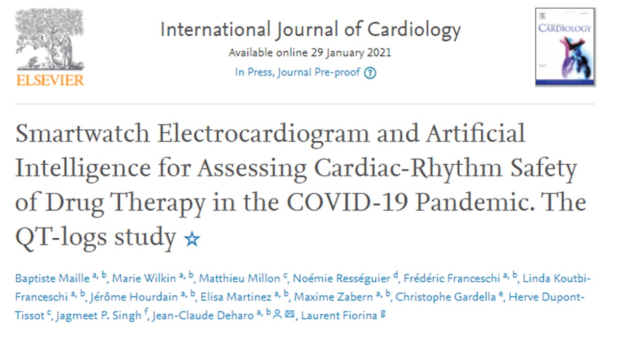 DetailsEtude récemment publiée dans la revue International Journal of Cardiology compare la mesure du QTc obtenue aveMontre ECG connectée, dont l’analyse est réalisée grâce à l’intelligence artificielle (Cardiologs), au QT mesuré sur un ECG 12 dérivations.